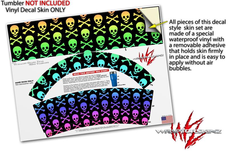 Skin Decal Wrap for Walmart Ozark Trail Tumblers 40oz Skull and Crossbones Rainbow (TUMBLER NOT INCLUDED) by WraptorSkinz
