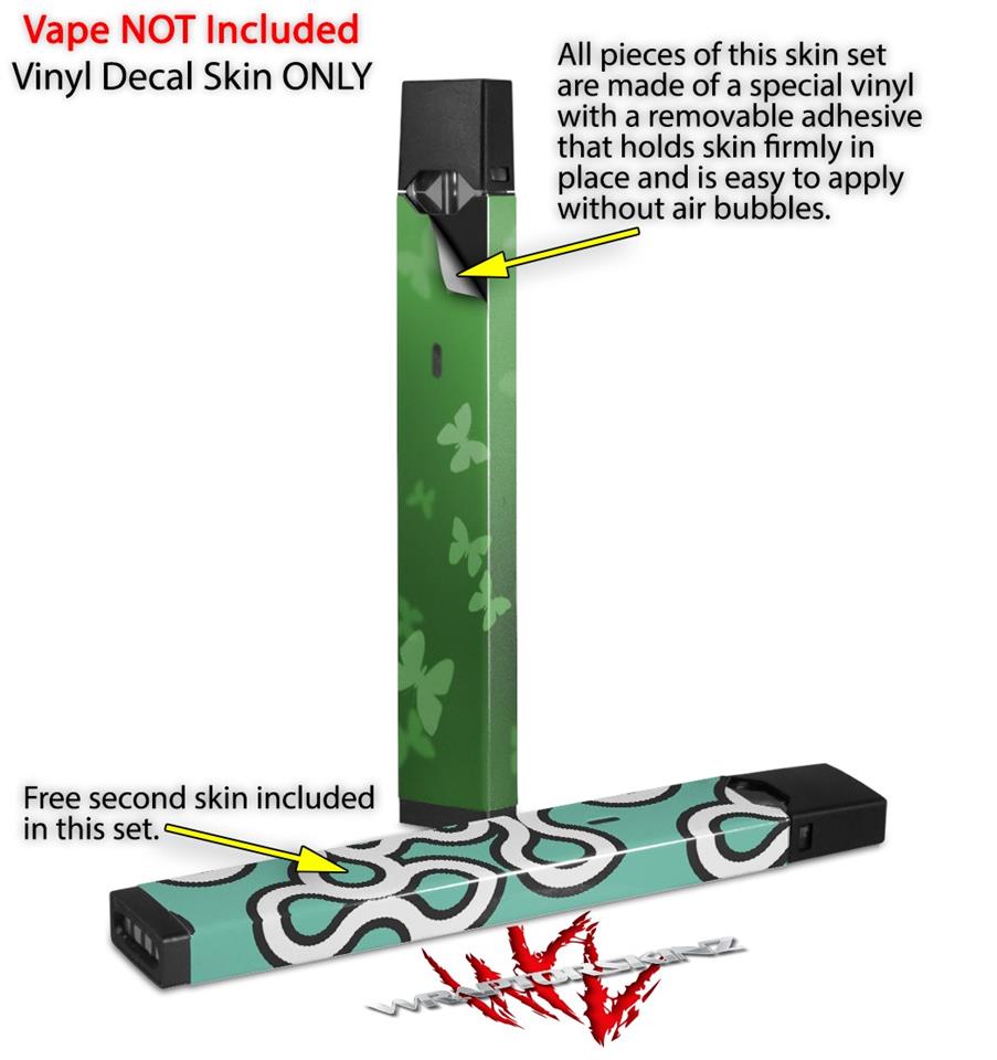 Skin Decal Wrap 2 Pack for Juul Vapes Bokeh Butterflies Green JUUL NOT INCLUDED