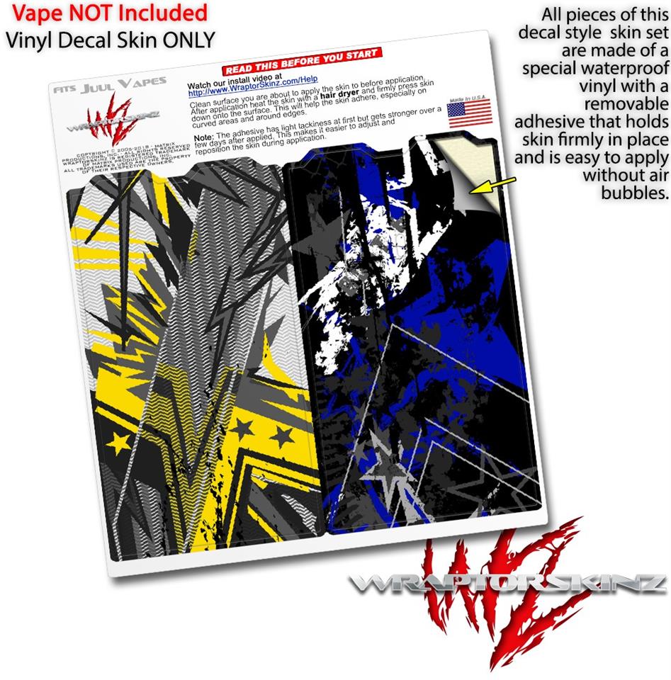 WraptorSkinz® skin wraps are printed using superb photo quality designs and vibrant colors printed with special fade resistant inks that last even in direct sun for years. WraptorSkinz are a composite of two layers of commercial grade materials. The bottom layer is a soft, flexible vinyl with a special removable adhesive that is easily positioned, applied without air bubbles. Next we print the bottom layer with UV protected, fade resistant inks that deliver superb photo quality designs in vibrant colors. Finally we bond a professional grade laminate over the entire skin adding a glossy protective finish. This product is not affiliated with or endorsed by the Juul brand.