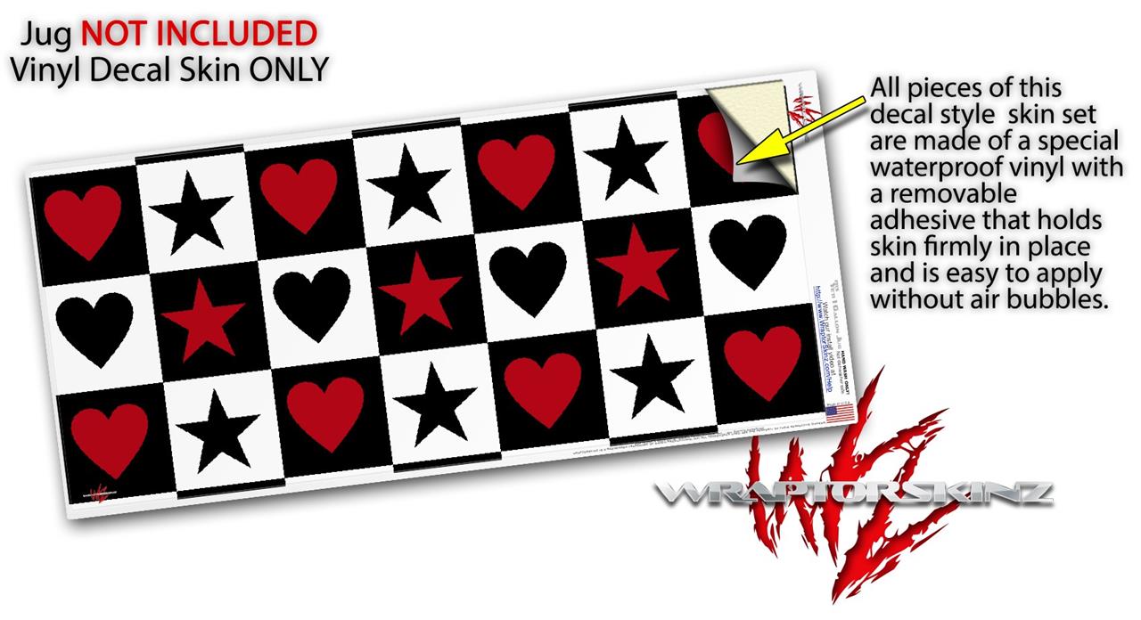 Skin Decal Wrap for Yeti 1 Gallon Jug Hearts and Stars Red - JUG NOT INCLUDED by WraptorSkinz