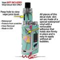 WraptorSkinz® skin wraps are printed using superb photo quality designs and vibrant colors printed with special fade resistant inks that last even in direct sun for years. WraptorSkinz are a composite of two layers of commercial grade materials. The bottom layer is a soft, flexible vinyl with a special removable adhesive that is easily positioned, applied without air bubbles. Next we print the bottom layer with UV protected, fade resistant inks that deliver superb photo quality designs in vibrant colors. Finally we bond a professional grade laminate over the entire skin adding a glossy protective finish. This product is not affiliated with or endorsed by the Smok brand.