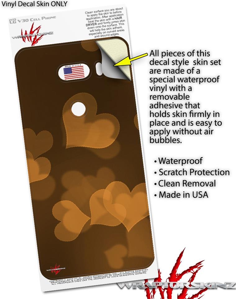 Skin Decal Wrap for LG V30 Bokeh Hearts Orange