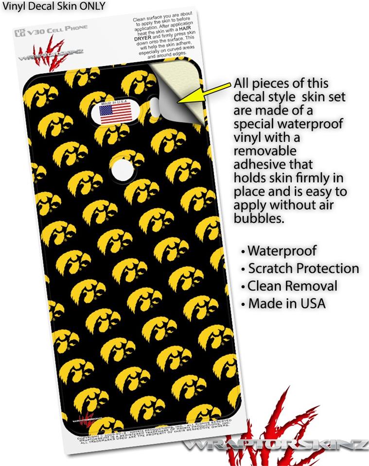 Skin Decal Wrap for LG V30 Iowa Hawkeyes Tigerhawk Tiled 06 Gold on Black