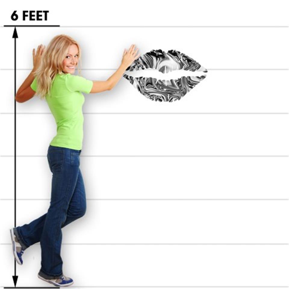 Liquid Metal Chrome - Kissing Lips Fabric Wall Skin Decal measures 24x15 inches