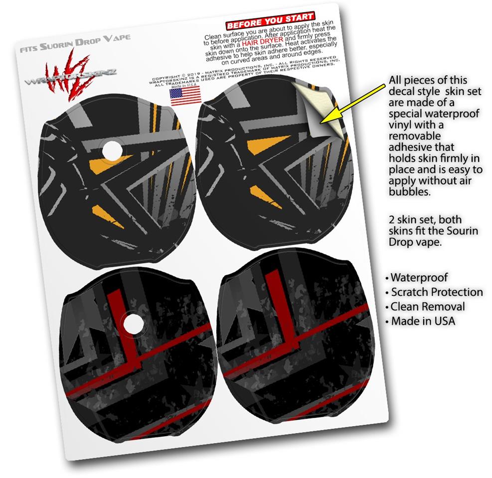 WraptorSkinz® skin wraps compatible with Suorin Drop Vape are printed using superb photo quality designs and vibrant colors printed with special fade resistant inks that last even in direct sun for years. WraptorSkinz are a composite of two layers of commercial grade materials. The bottom layer is a soft, flexible vinyl with a special removable adhesive that is easily positioned, applied without air bubbles. Next, we print the bottom layer with UV protected, fade resistant inks that deliver superb photo quality designs in vibrant colors. Finally, we bond a professional grade laminate over the entire skin adding a glossy protective finish. This product is not affiliated with or endorsed by Suorin.