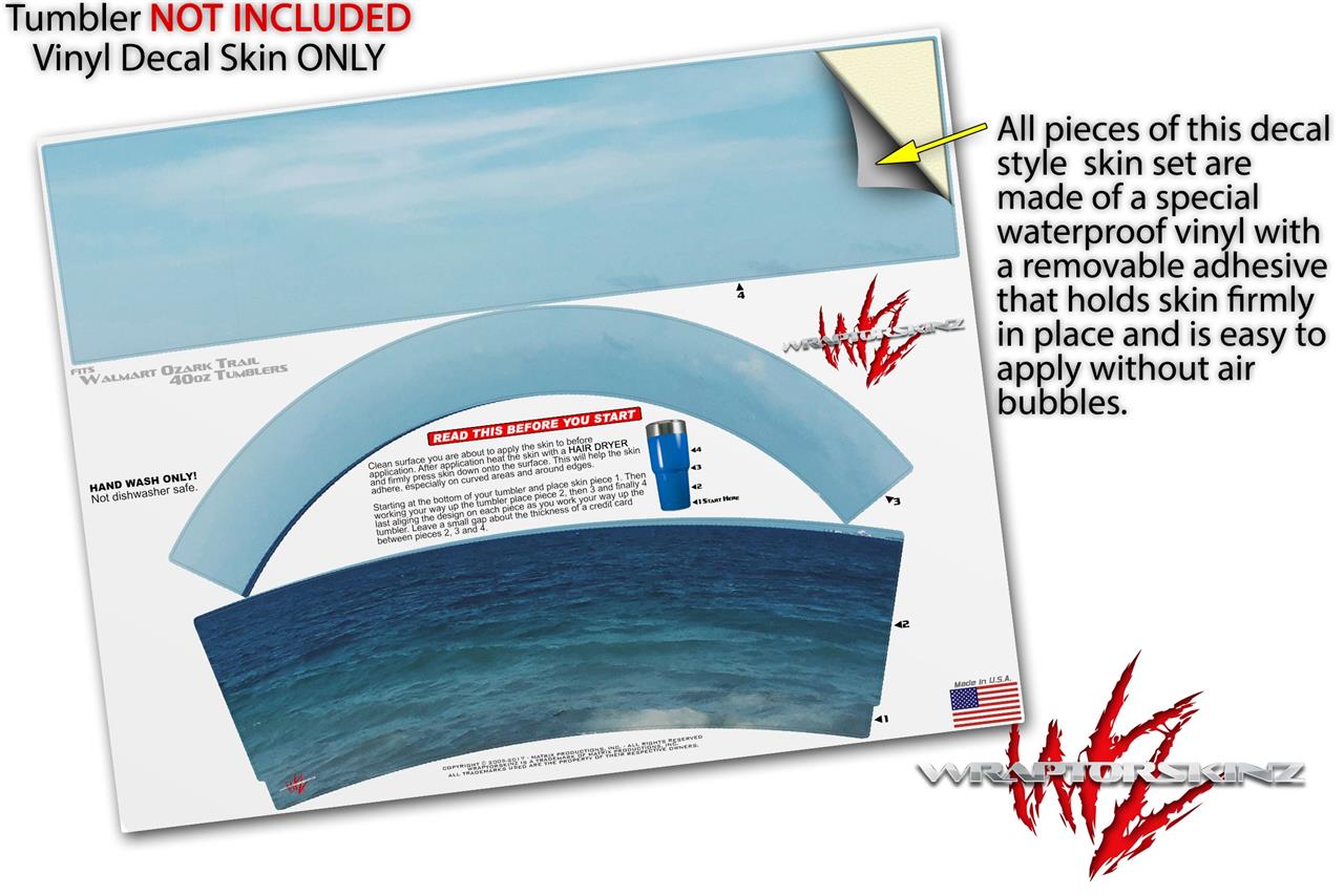 WraptorSkinz® skin wraps for Walmart Ozark Trail Tumblers are printed using superb photo quality designs and vibrant colors printed with special fade resistant inks that last even in direct sun for years. WraptorSkinz® are a composite of two layers of commercial grade materials. The bottom layer is a soft, flexible vinyl with a special removable adhesive that is easily positioned, applied without air bubbles. Next we print the bottom layer with UV protected, fade resistant inks that deliver superb photo quality designs in vibrant colors. Finally we bond a professional grade laminate over the entire skin adding a glossy protective finish.