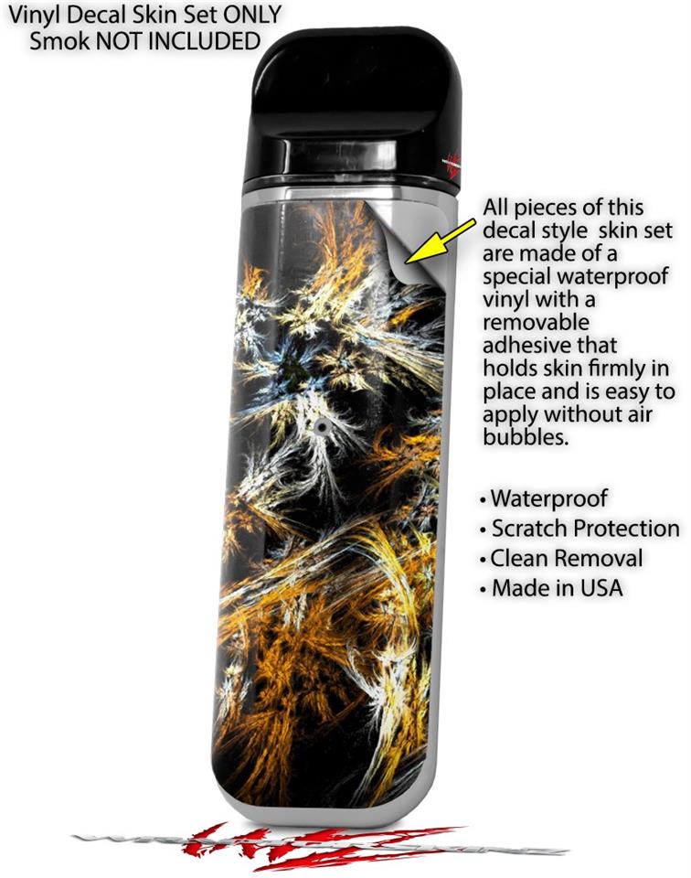 WraptorSkinz® skin wraps are printed using superb photo quality designs and vibrant colors printed with special fade resistant inks that last even in direct sun for years. WraptorSkinz are a composite of two layers of commercial grade materials. The bottom layer is a soft, flexible vinyl with a special removable adhesive that is easily positioned, applied without air bubbles. Next we print the bottom layer with UV protected, fade resistant inks that deliver superb photo quality designs in vibrant colors. Last, we bond a professional grade laminate over the entire skin adding a glossy protective finish. This product is not affiliated with or endorsed by the Smok brand.