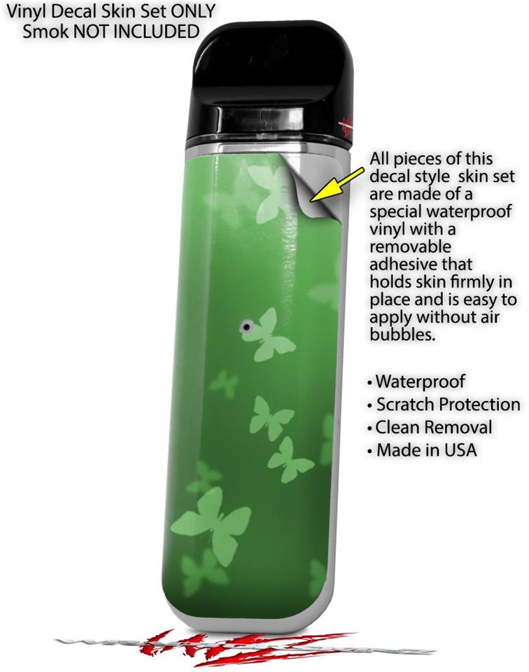 Skin Decal Wrap 2 Pack for Smok Novo v1 Bokeh Butterflies Green VAPE NOT INCLUDED