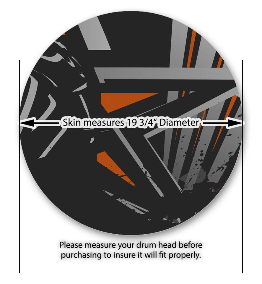 This design also available in other sizes. WraptorSkinz® skin wraps compatible with most kick drum heads. Printed using superb photo quality designs and vibrant colors printed with special fade resistant inks that last even in direct sun for years. WraptorSkinz are a composite three layer commercial grade materials vinyl. The bottom layer is a air release, grey block out removable adhesive that hides existing graphics on the drum head and is easily applied without air bubbles. The middle layer is a flexible vinyl printed with UV protected, fade resistant inks that deliver superb photo quality designs in vibrant colors. Finally, we bond a professional grade laminate over the entire skin adding a glossy protective finish.