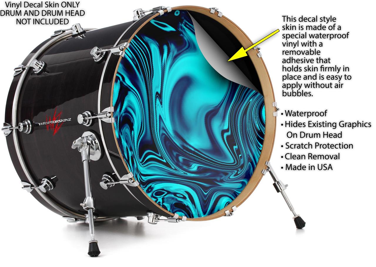 This design also available in other sizes. WraptorSkinz® skin wraps compatible with most kick drum heads. Printed using superb photo quality designs and vibrant colors printed with special fade resistant inks that last even in direct sun for years. WraptorSkinz are a composite three layer commercial grade materials vinyl. The bottom layer is a air release, grey block out removable adhesive that hides existing graphics on the drum head and is easily applied without air bubbles. The middle layer is a flexible vinyl printed with UV protected, fade resistant inks that deliver superb photo quality designs in vibrant colors. Finally, we bond a professional grade laminate over the entire skin adding a glossy protective finish.