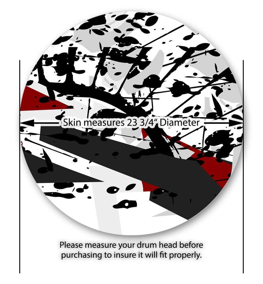 This design also available in other sizes. WraptorSkinz® skin wraps compatible with most kick drum heads. Printed using superb photo quality designs and vibrant colors printed with special fade resistant inks that last even in direct sun for years. WraptorSkinz are a composite three layer commercial grade materials vinyl. The bottom layer is a air release, grey block out removable adhesive that hides existing graphics on the drum head and is easily applied without air bubbles. The middle layer is a flexible vinyl printed with UV protected, fade resistant inks that deliver superb photo quality designs in vibrant colors. Finally, we bond a professional grade laminate over the entire skin adding a glossy protective finish.