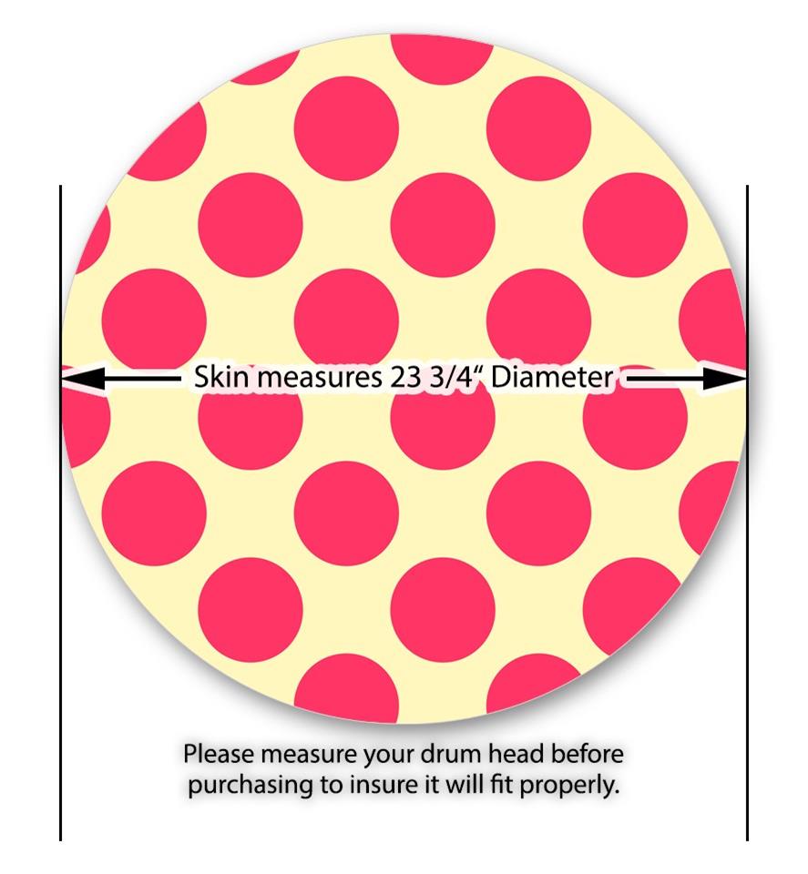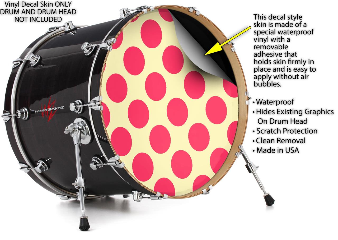 Decal Skin works with most 24" Bass Kick Drum Heads Kearas Polka Dots Pink On Cream - DRUM HEAD NOT INCLUDED