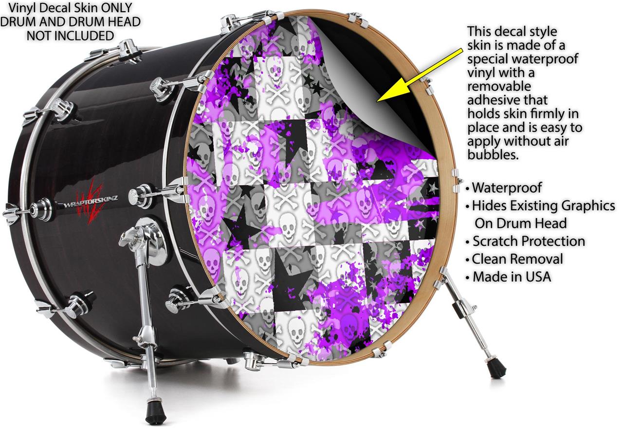 Decal Skin works with most 24" Bass Kick Drum Heads Purple Checker Skull Splatter - DRUM HEAD NOT INCLUDED