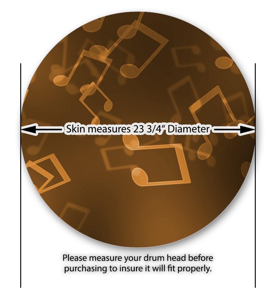 This design also available in other sizes. WraptorSkinz® skin wraps compatible with most kick drum heads. Printed using superb photo quality designs and vibrant colors printed with special fade resistant inks that last even in direct sun for years. WraptorSkinz are a composite three layer commercial grade materials vinyl. The bottom layer is a air release, grey block out removable adhesive that hides existing graphics on the drum head and is easily applied without air bubbles. The middle layer is a flexible vinyl printed with UV protected, fade resistant inks that deliver superb photo quality designs in vibrant colors. Finally, we bond a professional grade laminate over the entire skin adding a glossy protective finish.