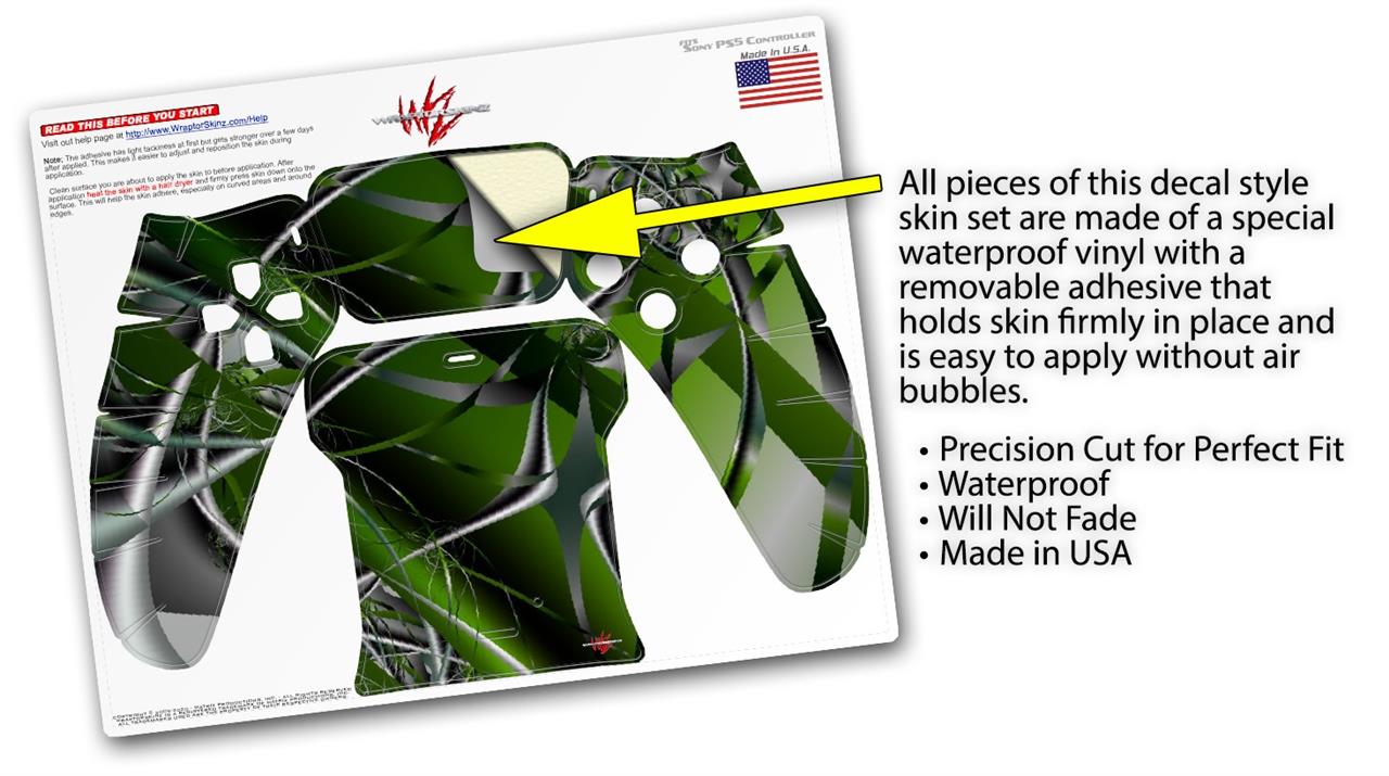 WraptorSkinz® skin wraps for the Sony Playstation 5 controller are printed using superb photo quality designs and vibrant colors printed with special fade resistant inks that last even in direct sun for years. WraptorSkinz are a composite of two layers of commercial grade materials. The bottom layer is a soft, flexible vinyl with a special removable adhesive that is easily positioned, applied without air bubbles. Next we print the bottom layer with UV protected, fade resistant inks that deliver superb photo quality designs in vibrant colors. Last, we bond a professional grade laminate over the entire skin adding a glossy protective finish. This product is not affiliated with or endorsed by Sony or the Playstation brand.