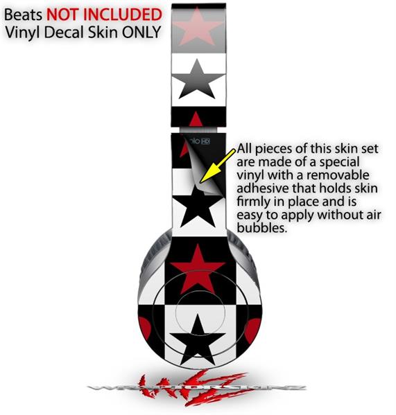 WraptorSkinz Skin Decal Wrap compatible with Beats Solo HD (Original) Hearts and Stars Red (HEADPHONES NOT INCLUDED)