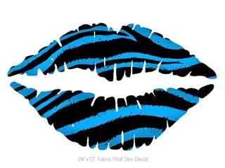 Zebra Blue - Kissing Lips Fabric Wall Skin Decal measures 24x15 inches