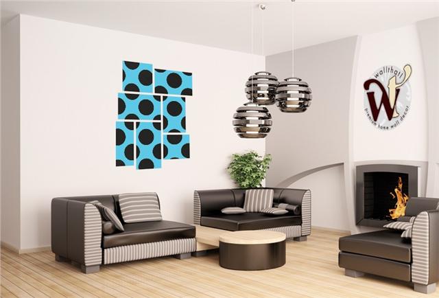 Kearas Polka Dots Black And Blue - 7 Piece Fabric Peel and Stick Wall Skin Art (50x38 inches)