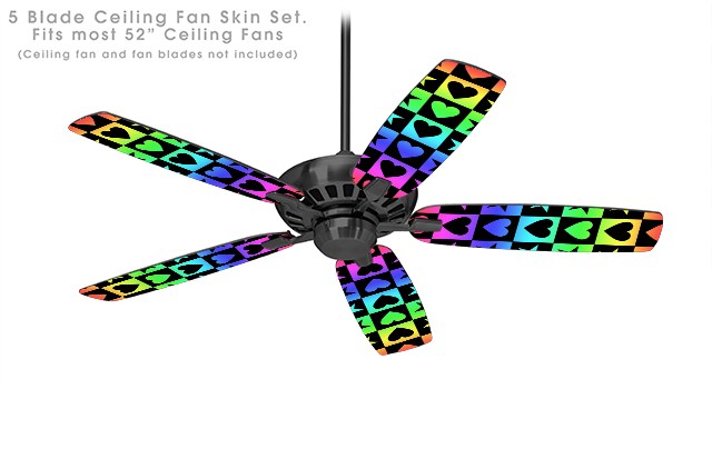 Hearts And Stars Rainbow - Ceiling Fan Skin Kit fits most 52 inch fans (FAN and BLADES SOLD SEPARATELY)