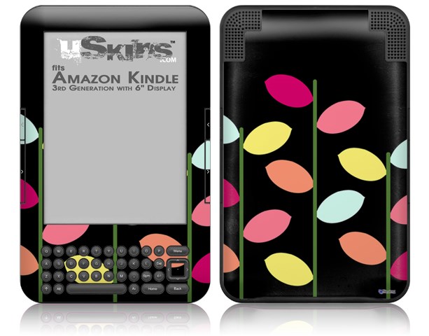 Plain Leaves On Black - Decal Style Skin fits Amazon Kindle 3 Keyboard (with 6 inch display)