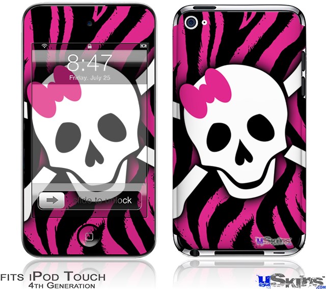 iPod Touch 4G Decal Style Vinyl Skin - Pink Zebra Skull