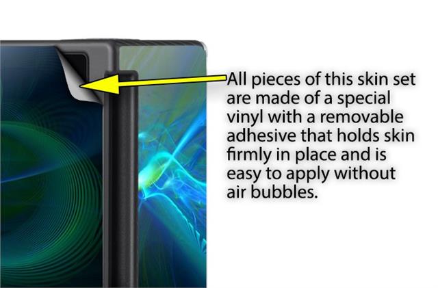 WraptoSkinz™ skins are superb photo quality designs and vibrant colors printed with special Eco-Friendly, fade resistant inks. Our skins are self-adhering flexible vinyl skins that helps prevent scratches. Made of composite, multi-layered commercial grade materials. The bottom layer is made with a special removable adhesive that is easily positioned and applied without air bubbles. We print your design on the bottom layer then bond a professional grade laminate over the entire skin adding a glossy protective finish.