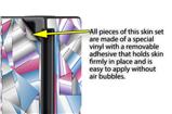 WraptoSkinz™ skins are superb photo quality designs and vibrant colors printed with special Eco-Friendly, fade resistant inks. Our skins are self-adhering flexible vinyl skins that helps prevent scratches. Made of composite, multi-layered commercial grade materials. The bottom layer is made with a special removable adhesive that is easily positioned and applied without air bubbles. We print your design on the bottom layer then bond a professional grade laminate over the entire skin adding a glossy protective finish.