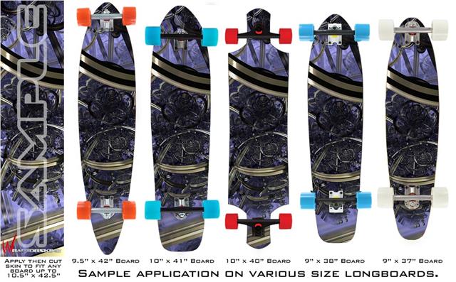 Our longboard skins are made so that one size fits boards up to 10” wide x 42” long. This means after applying the skin it you will trimming to fit you’re the shape of your board with a sharp utility knife.
