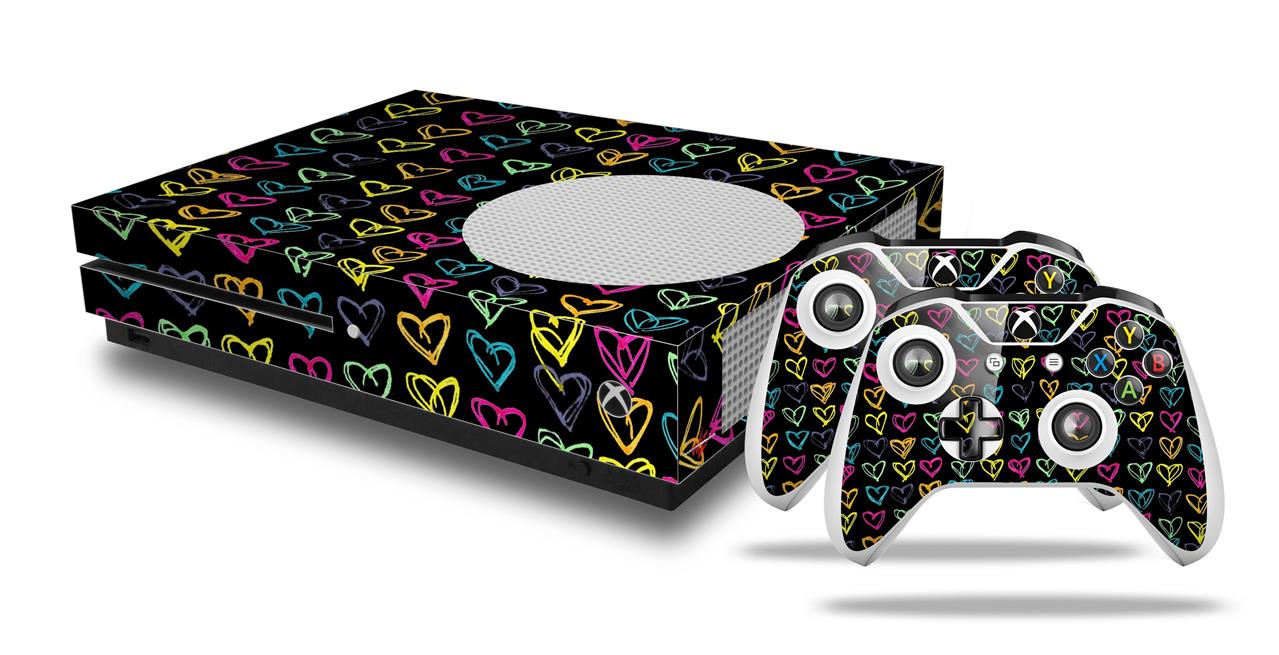WraptorSkinz Decal Skin Wrap Set works with 2016 and newer XBOX One S Console and 2 Controllers Kearas Hearts Black