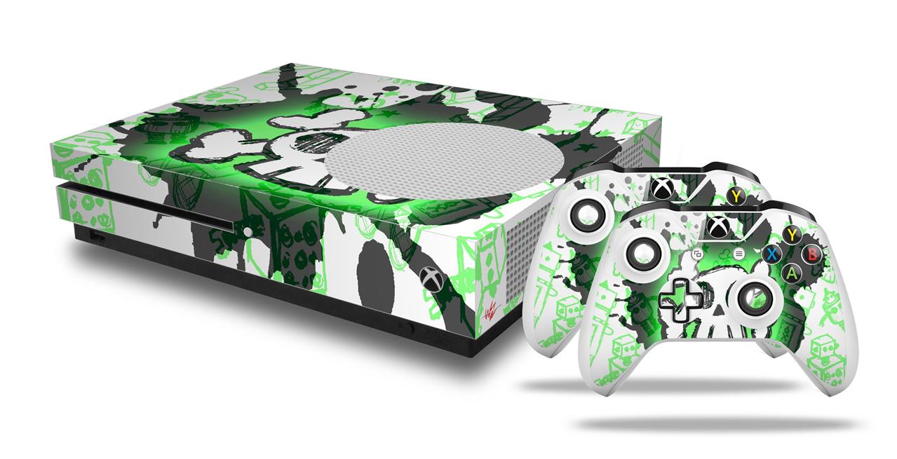 WraptorSkinz Decal Skin Wrap Set works with 2016 and newer XBOX One S Console and 2 Controllers Cartoon Skull Green