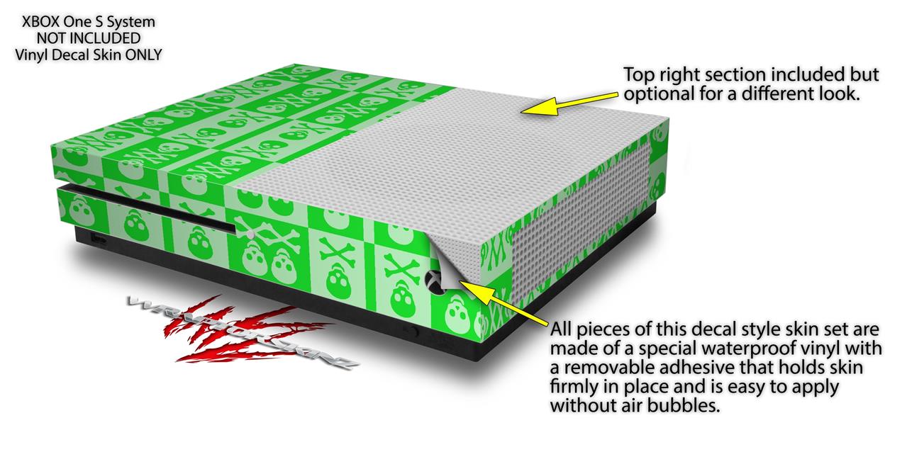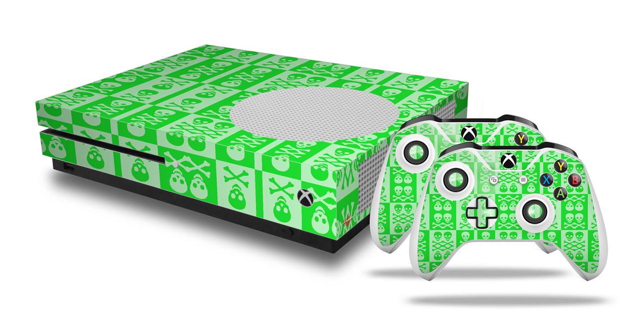 WraptorSkinz Decal Skin Wrap Set works with 2016 and newer XBOX One S Console and 2 Controllers Skull And Crossbones Pattern Green