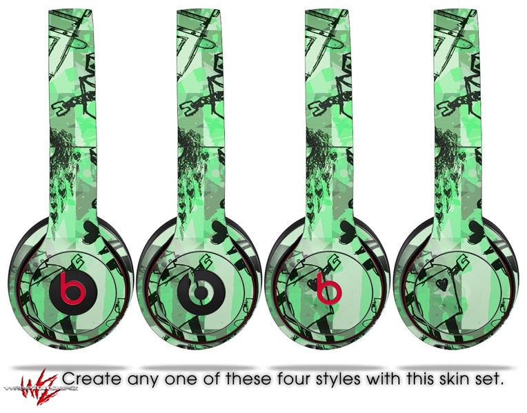 WraptorSkinz Skin Decal Wrap compatible with Beats Solo 2 and Solo 3 Wireless Headphones Scene Kid Sketches Green (HEADPHONES NOT INCLUDED)