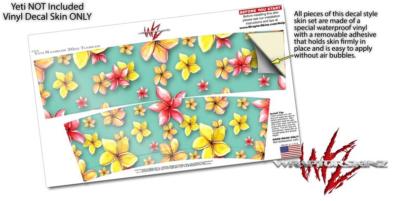 Skin Decal Wrap for Yeti Tumbler Rambler 30 oz Beach Flowers Seafoam Green (TUMBLER NOT INCLUDED)