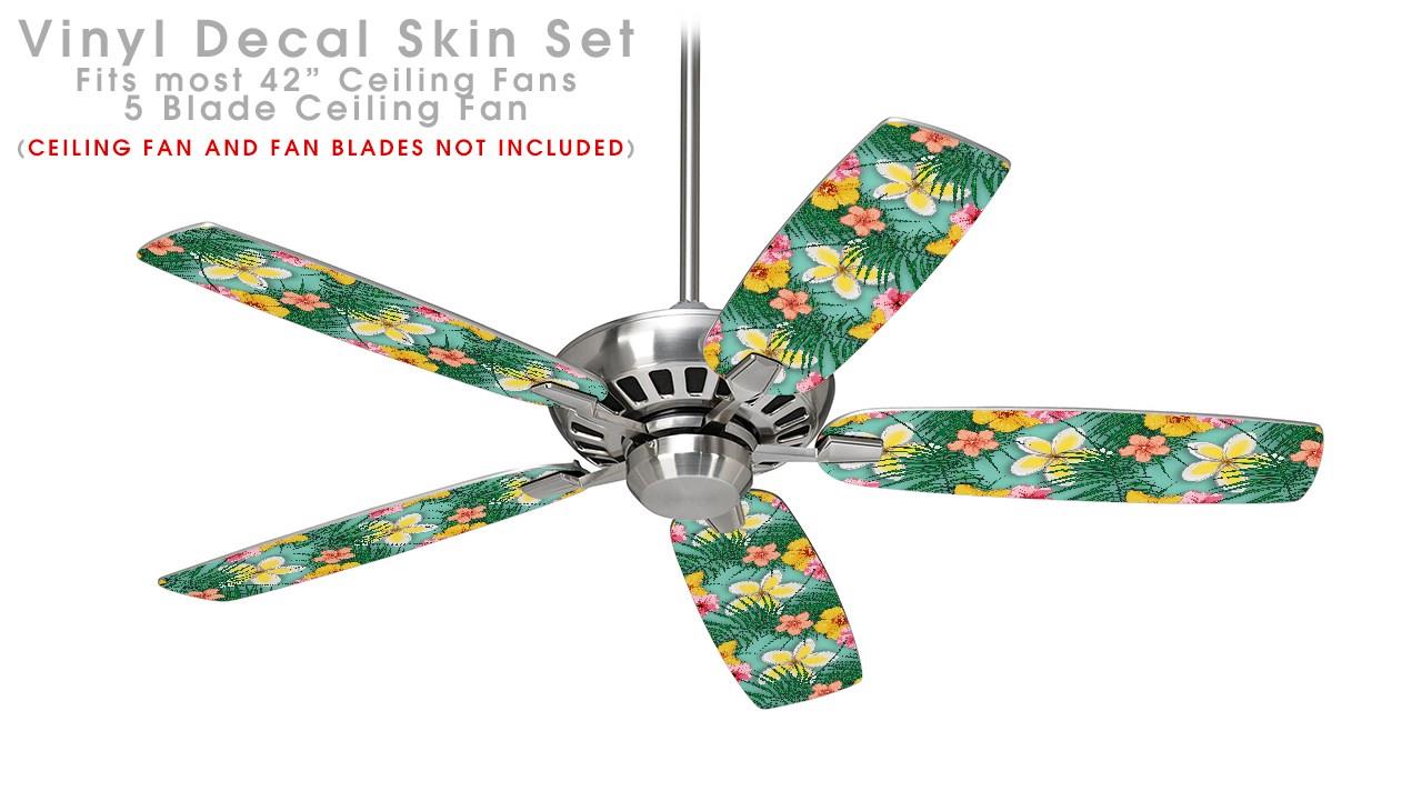 Beach Flowers 02 Seafoam Green - Ceiling Fan Skin Kit fits most 42 inch fans (FAN and BLADES SOLD SEPARATELY)