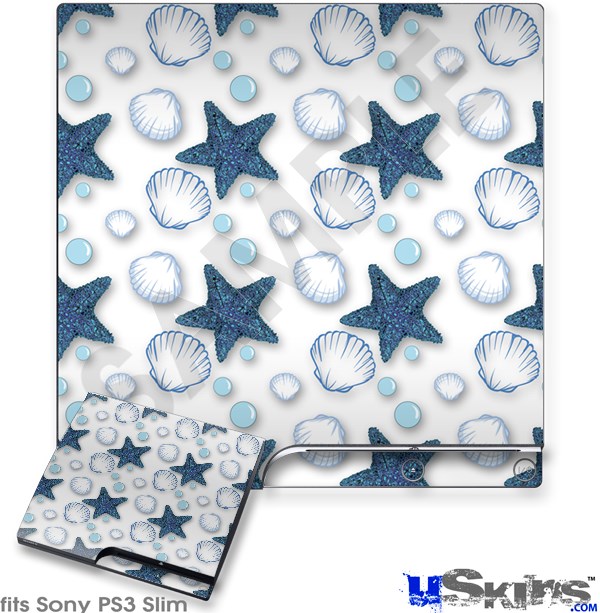 Decal Skin compatible with Sony PS3 Slim Starfish and Sea Shells White