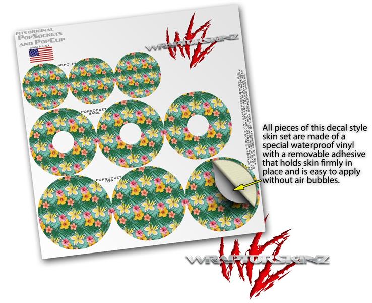 Decal Style Vinyl Skin Wrap 3 Pack for PopSockets Beach Flowers 02 Seafoam Green (POPSOCKET NOT INCLUDED)